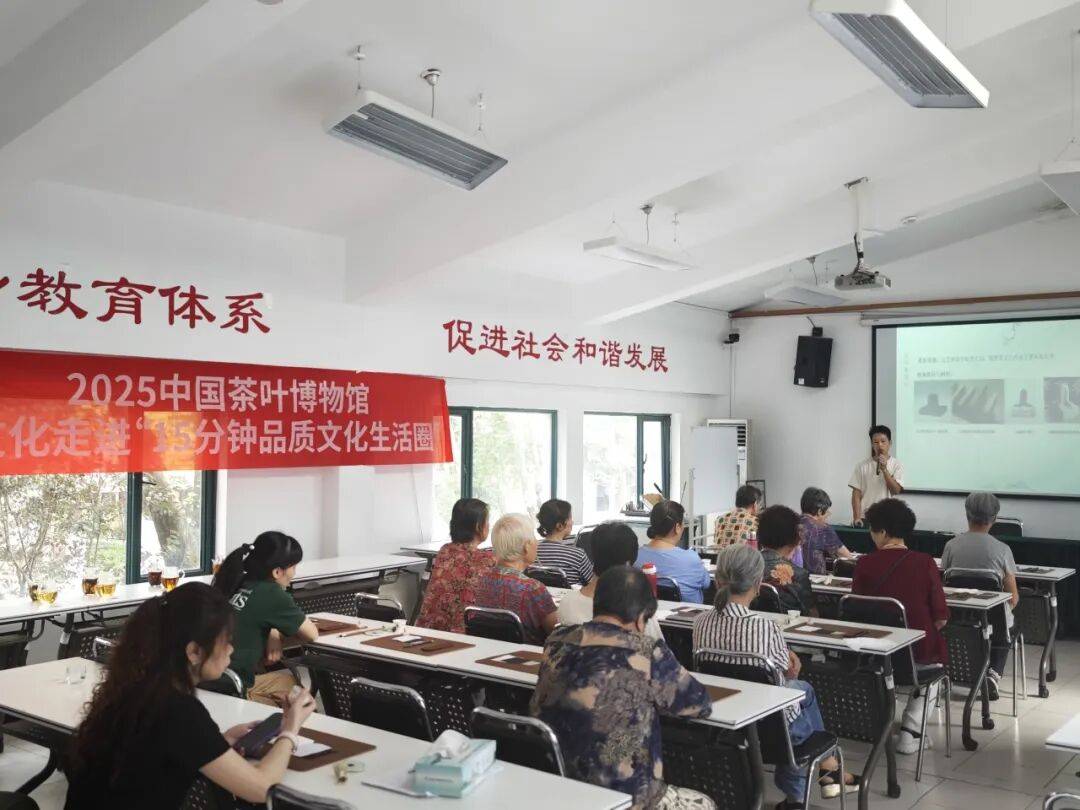 9月23日上午,2025年中国茶叶博物馆送茶文化走进“15分钟品质文化生活圈”活动在西湖街道灵隐社区举行,活动包含以“印刻茶趣”为主题的体验活动及“国茶成就图文展·茶史溯源”展览,约有村民十余人参加。